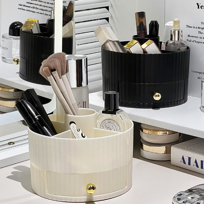 轻奢化妆品收纳筒桌面抽屉式置物架梳妆台分格收纳盒家用客厅笔筒