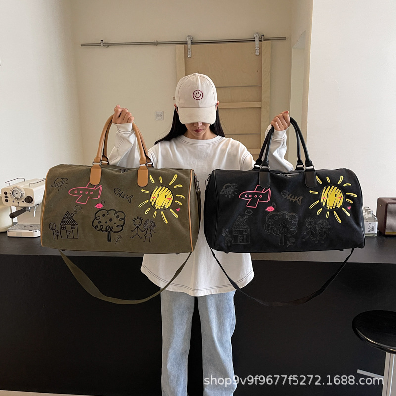 跨境货源新款帆布单肩包大容量短途旅行包袋手提包行李袋外贸批发