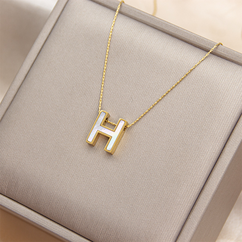 跨境H字母项链轻奢女冷淡风白贝母锁骨链时尚百搭简约感饰品