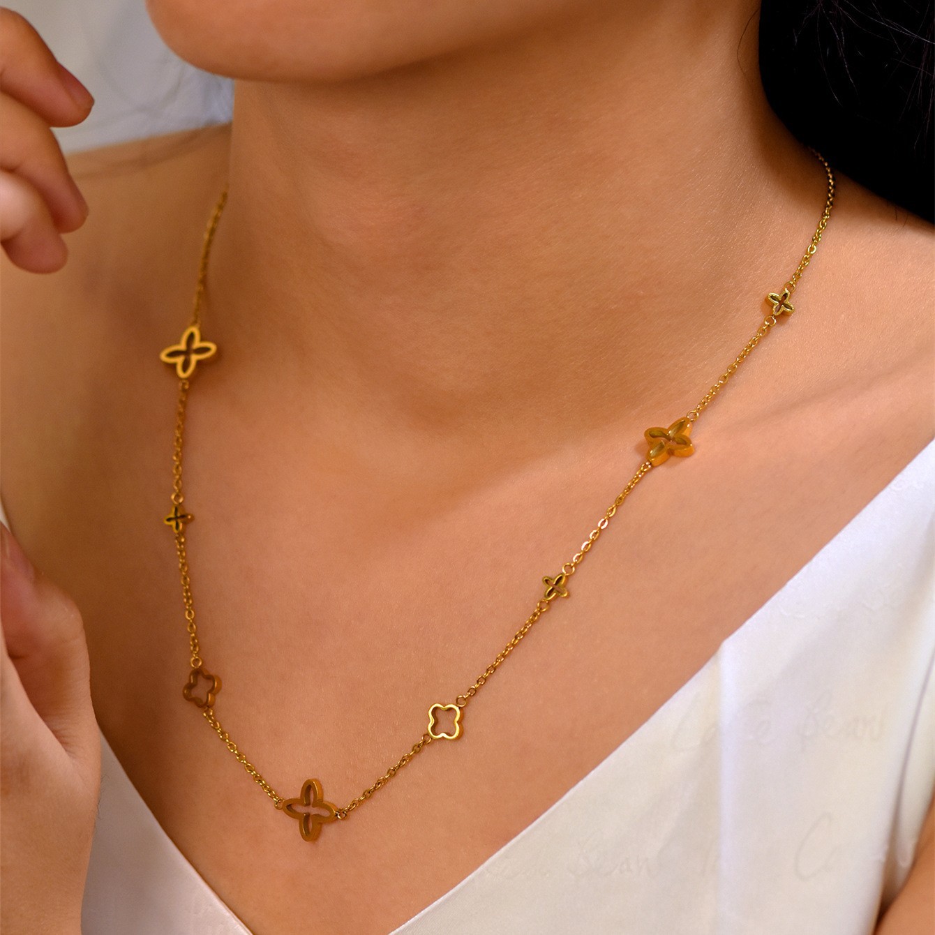 跨境18k金钛钢四叶草锁骨链轻奢精致幸运项链百搭时尚清新吊坠