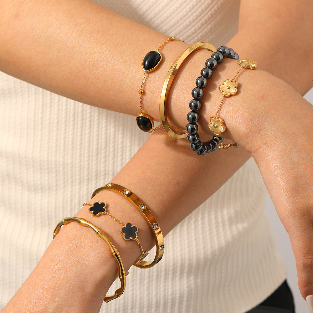 不锈钢真空电镀镀18k金手镯手链 多款叠戴首饰品镶钻镶石套装女