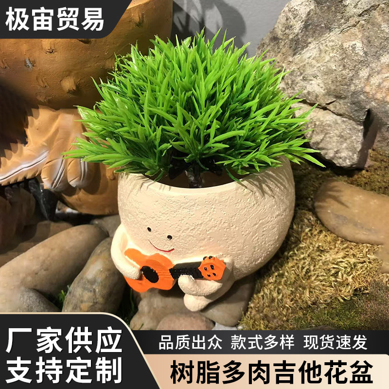 可爱多肉吉他花盆树脂工艺品创意家居个性花盆户外花园造景装饰