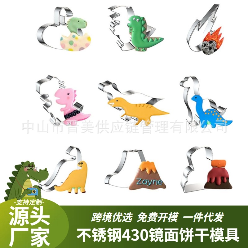 9件套恐龙不锈钢饼干模具翻糖曲奇蔬菜水果切模剑龙霸王烘焙工具