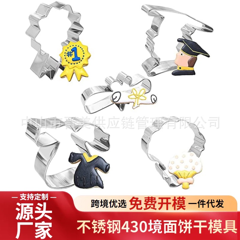5件毕业季套装不锈钢饼干模具奖章证书花束按压式烘焙工具diy跨境