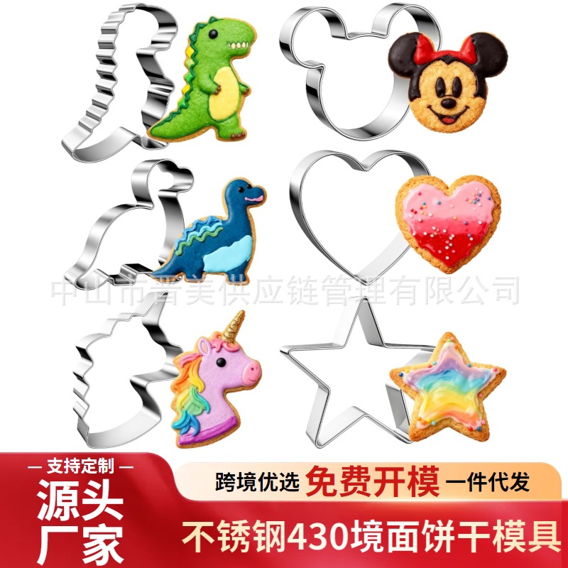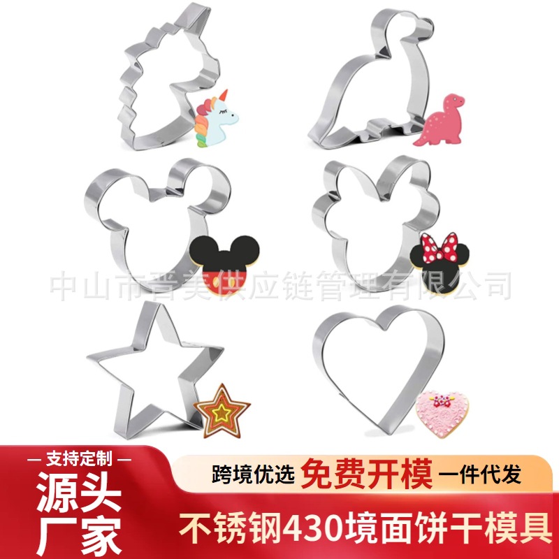 6件米奇饼干模具独角兽恐龙星星心形按压式不锈钢烘焙工具diy跨境