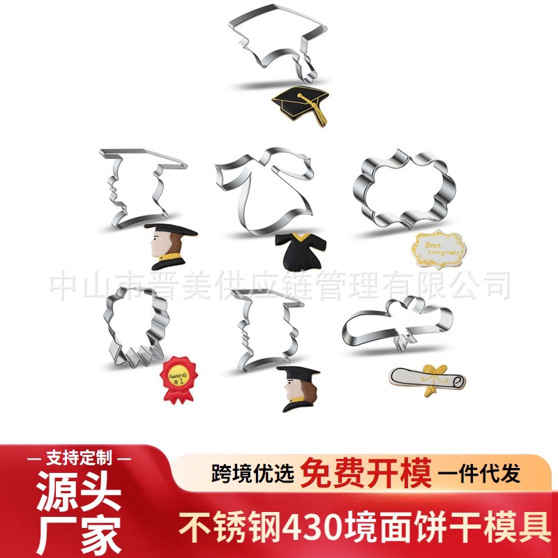 7件毕业季套装不锈钢饼干模具证书博士服花束按压式烘焙工具跨境