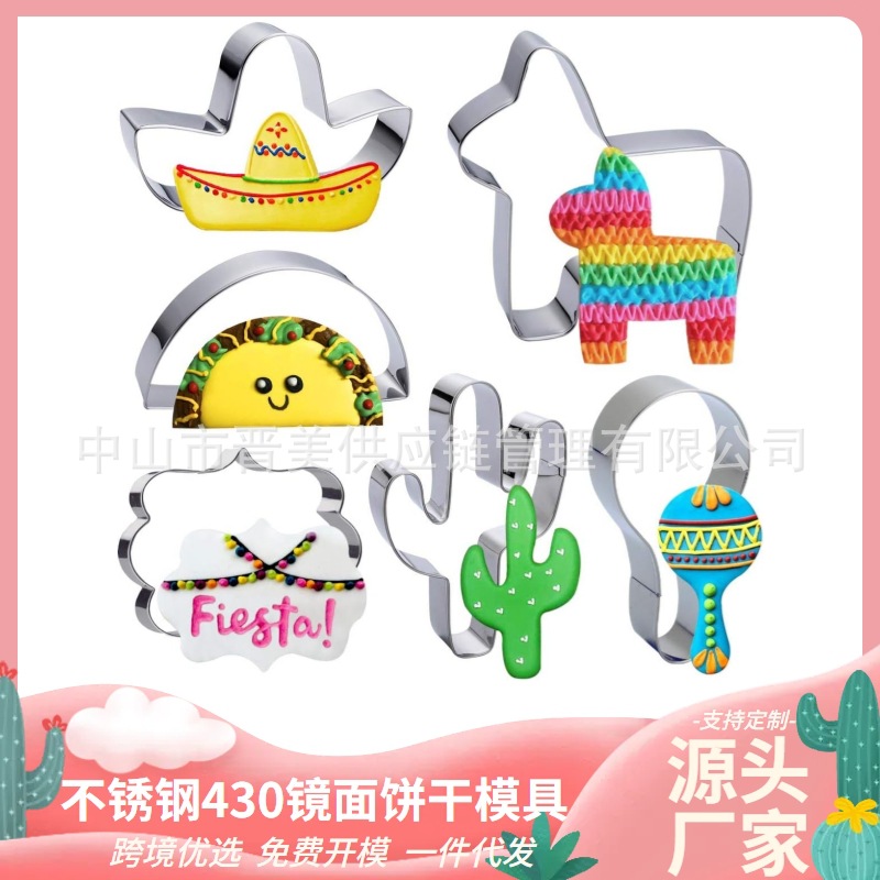 7件仙人掌套装不锈钢饼干模具羊驼系列吉他按压式烘焙工具diy跨境