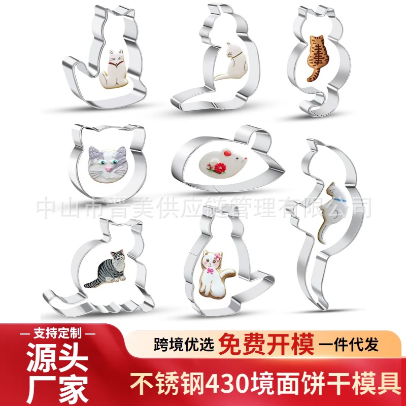 8件套猫咪饼干模具老鼠小猫波斯猫造型不锈钢按压式烘焙工具跨境