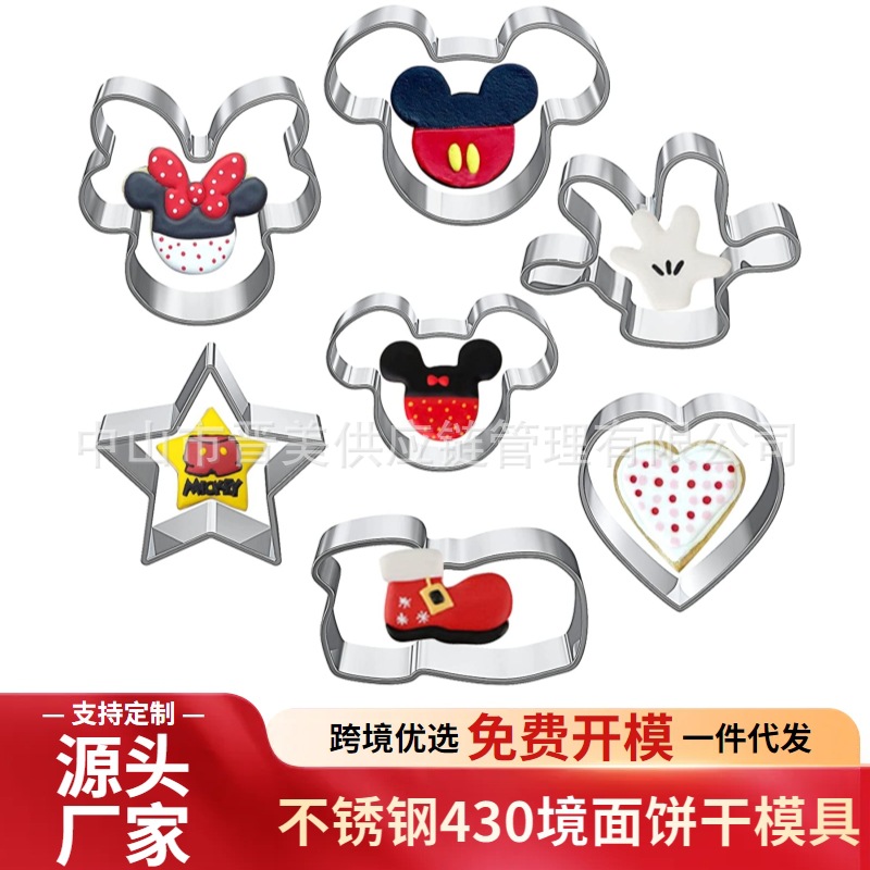 8件米奇饼干模具卡通米老鼠生日派对不锈钢蛋糕工具按压式diy跨境