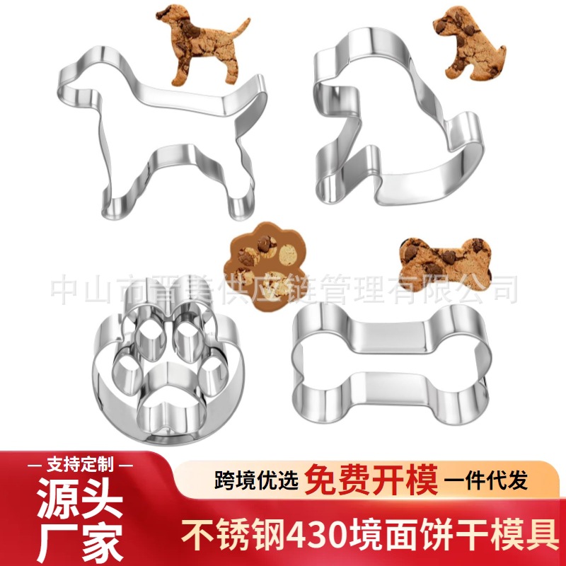 宠物小狗饼干模具狗爪狗骨头家犬翻糖不锈钢按压式烘焙工具跨境