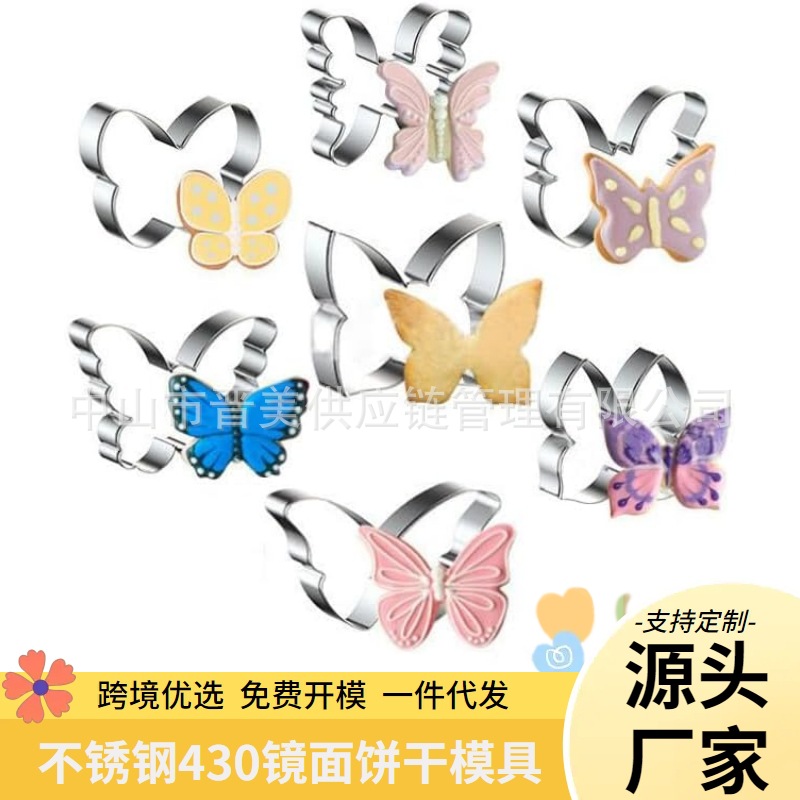 7件套蝴蝶饼干模具复活节按压不锈钢曲奇磨具翻糖烘焙工具DIY跨境