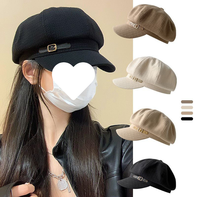 华夫格八角帽女秋冬季网红百搭遮阳帽防晒日韩系小头围帽子复古