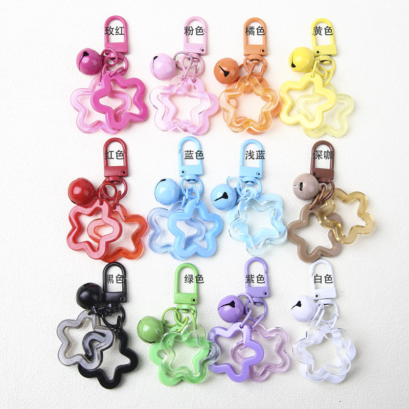 彩色亚克力五角星铃铛钥匙扣 挂件配件背包锁扣挂饰钥匙圈车挂