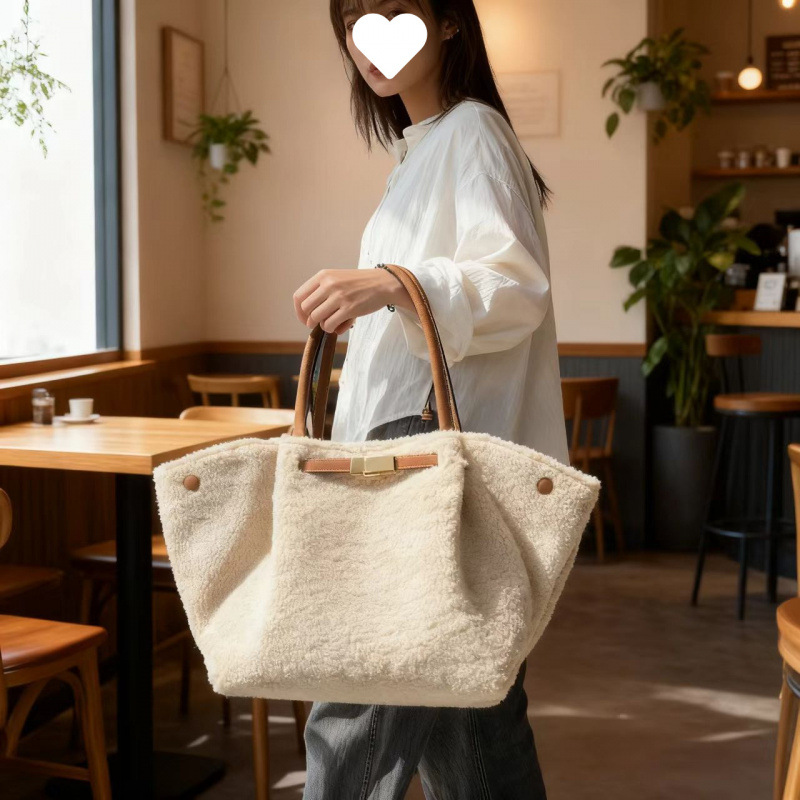 2025年新款单肩包大容量仿羊羔绒托特包时尚百搭包通勤女士手提包