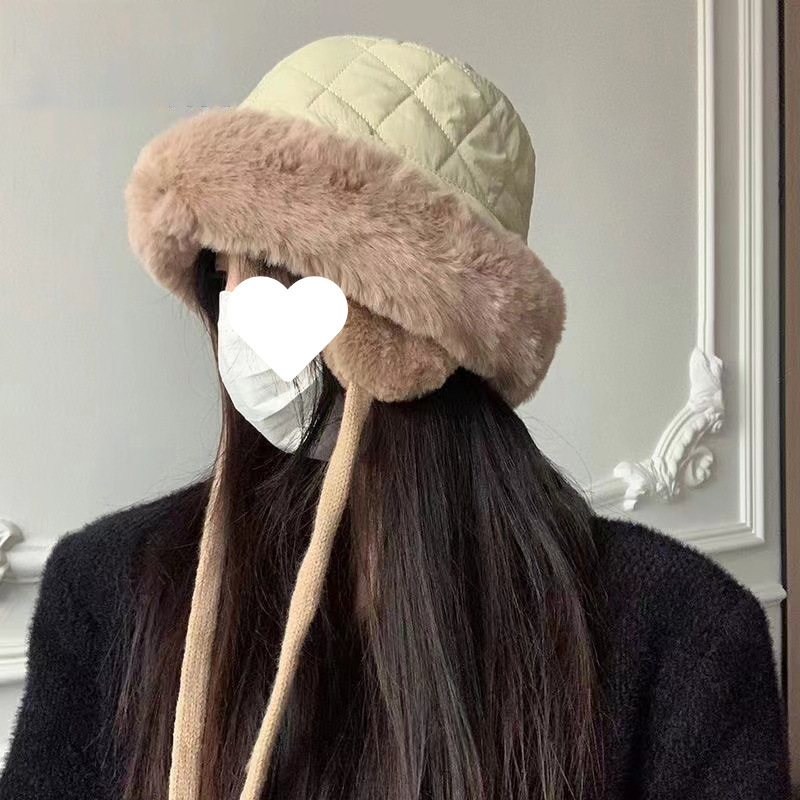 大脸护耳渔夫帽女秋冬季加绒加厚保暖毛绒盆帽骑车防风帽子成人