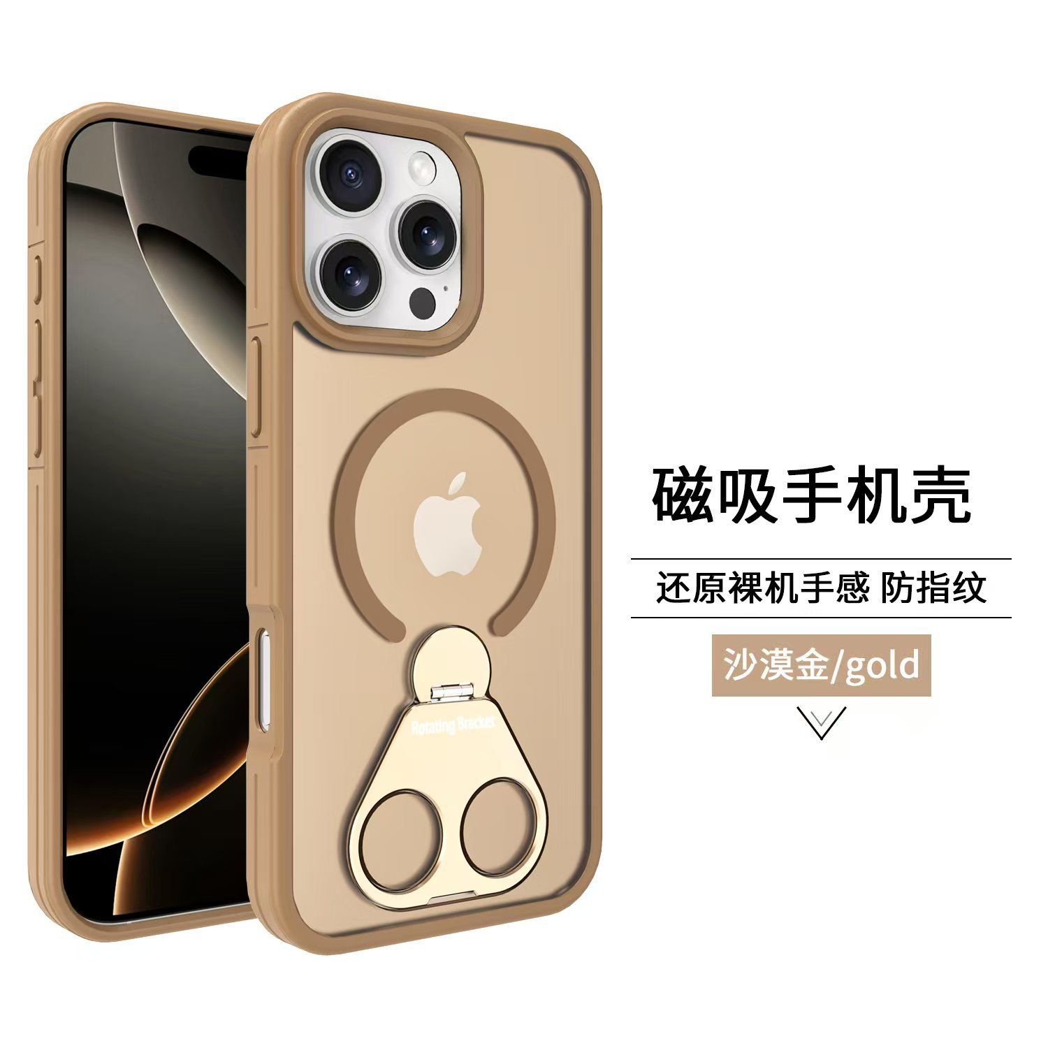 创意360度旋转支架适用iPhone17磨砂肤感磁吸手机壳苹果15镜头膜