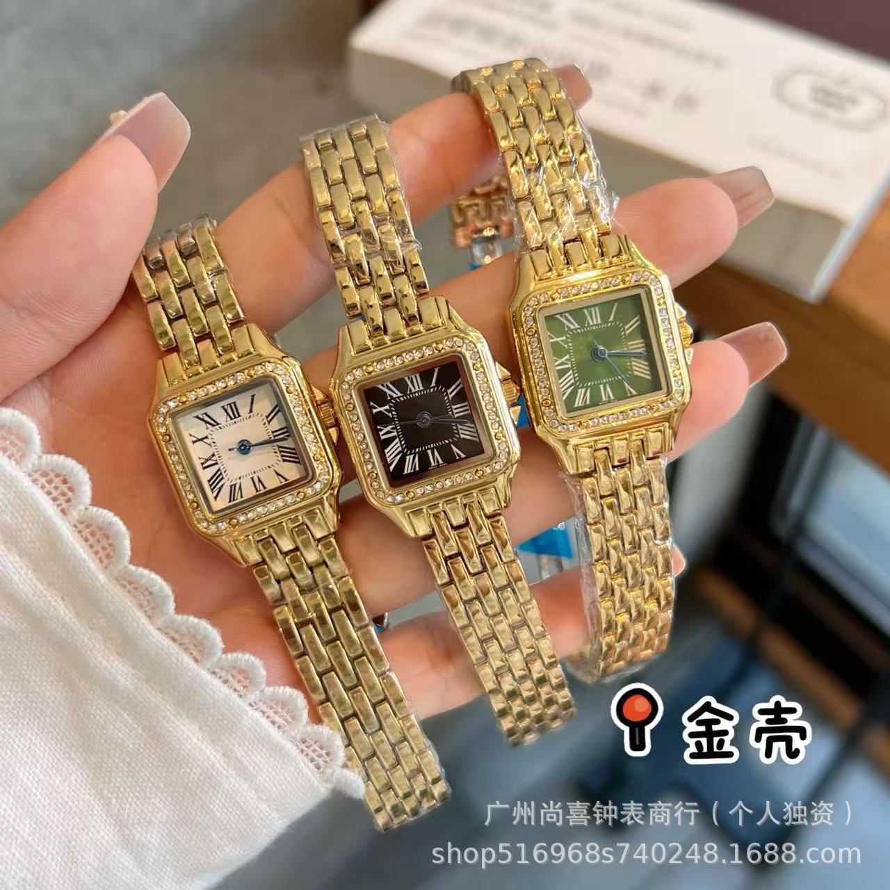 山度士猎豹手表方形表镶钻石英女款表外贸批发厂家货源精致休闲风