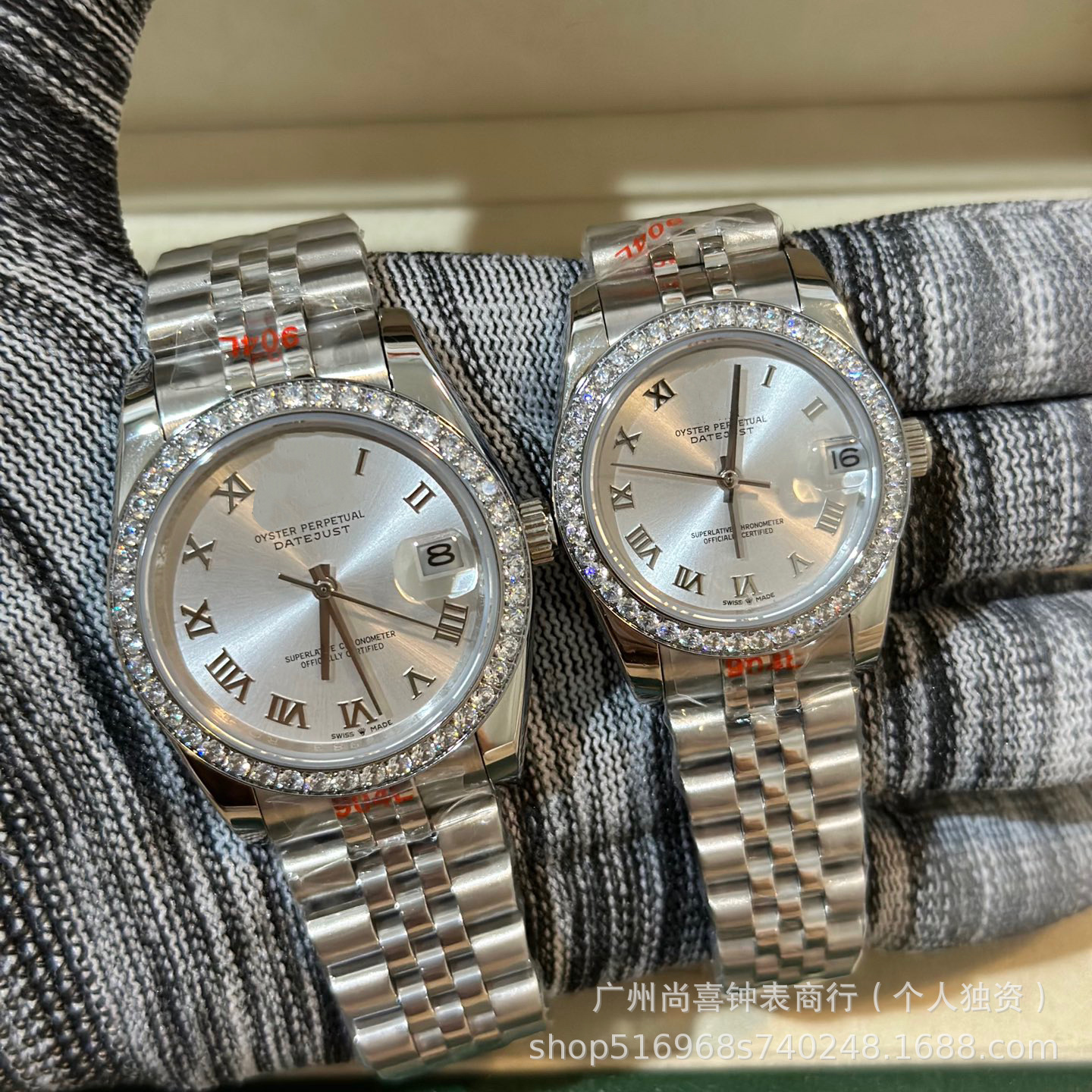 劳家男士女士日志型自动机械手表蚝式钢带钻面蓝宝石单历情侣手表