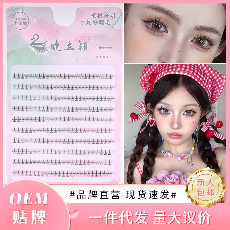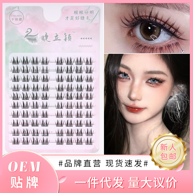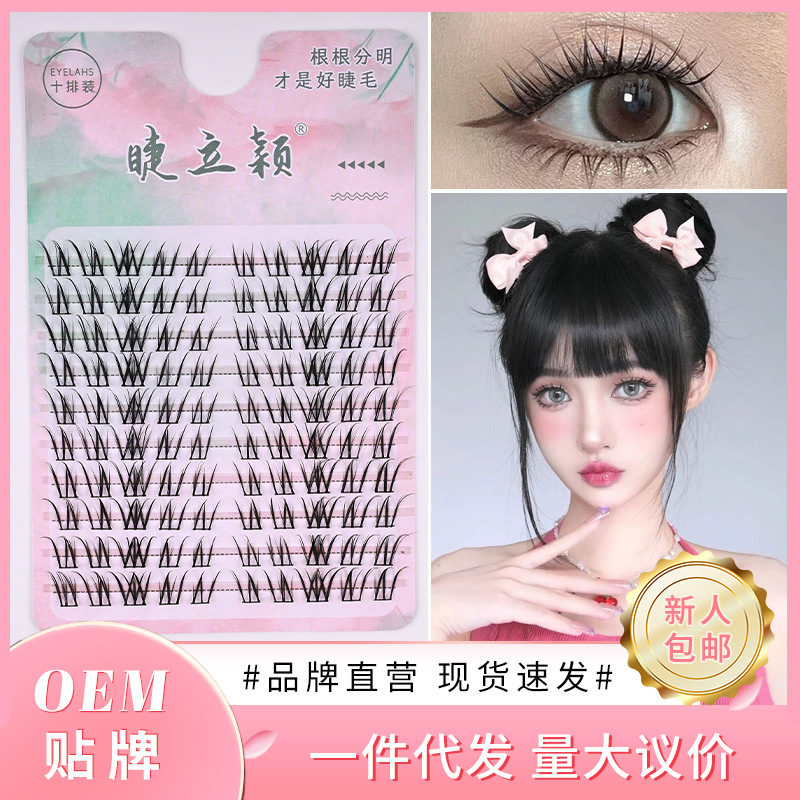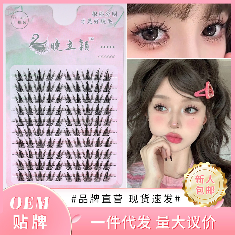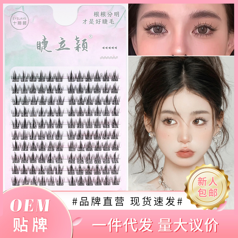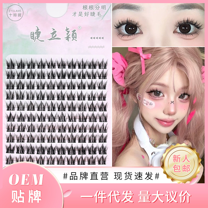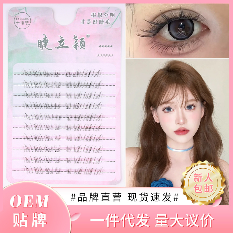 睫立颖轻奢双尖假睫毛三部曲单簇10排纯欲新手自然上睫毛厂家批发
