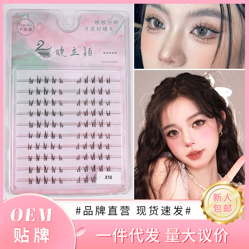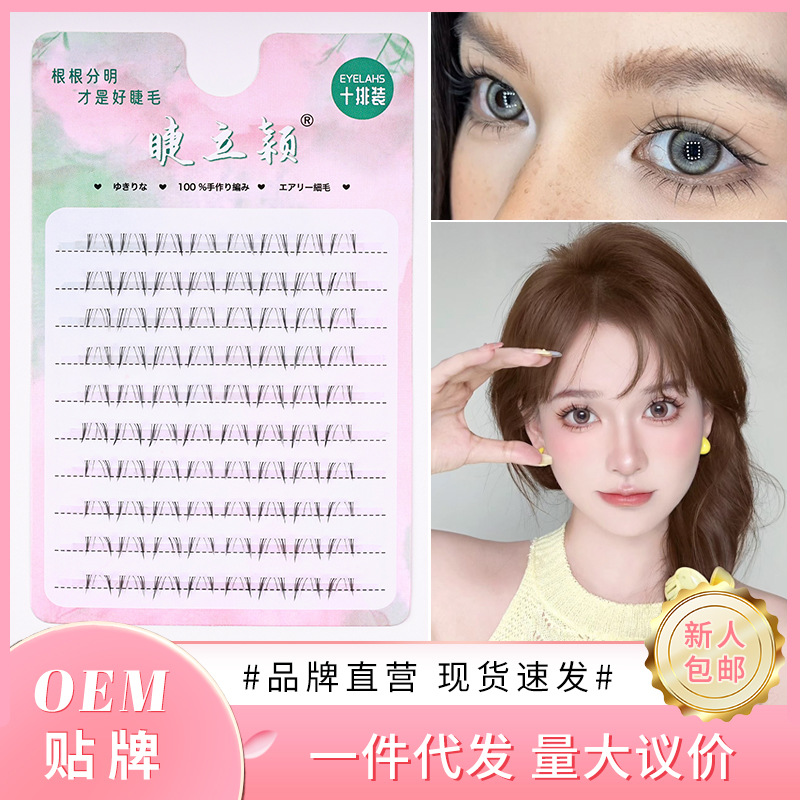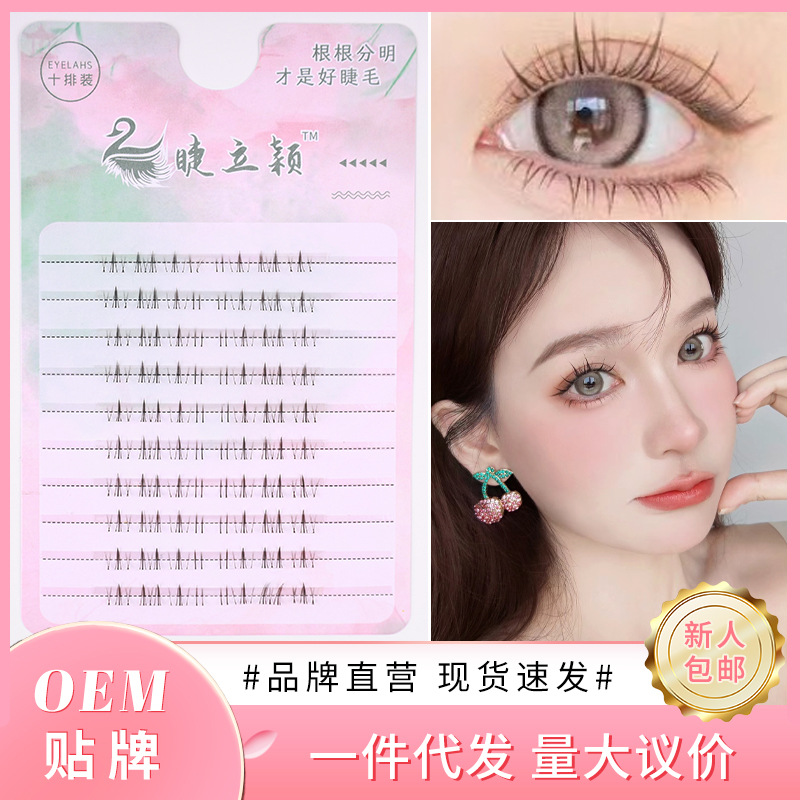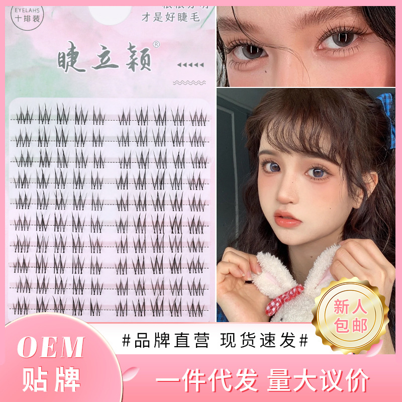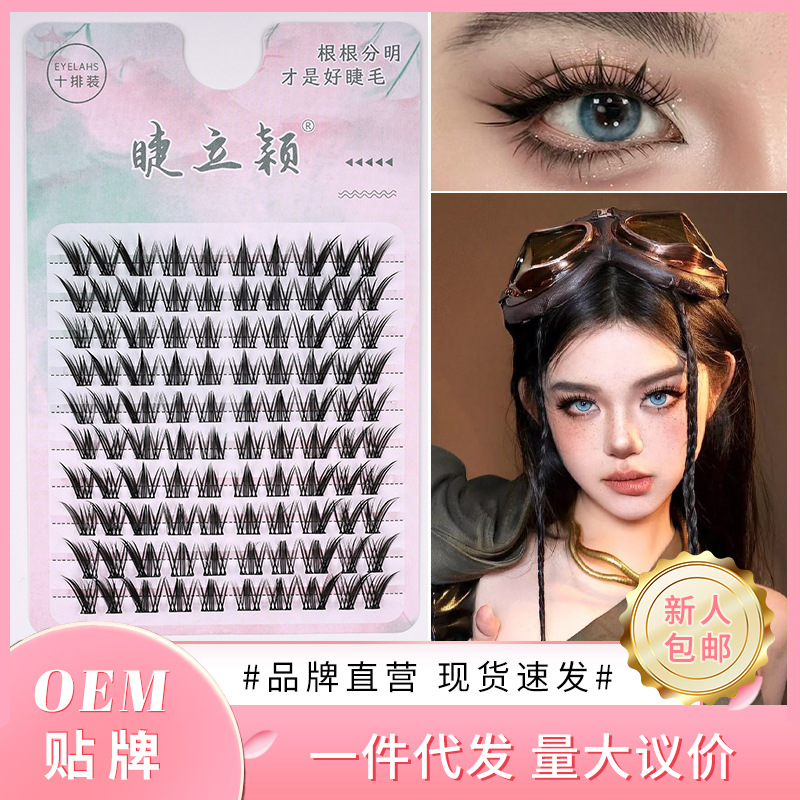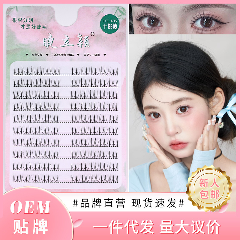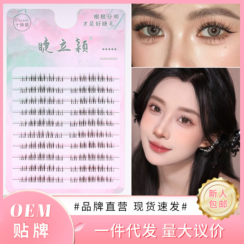 睫立颖轻奢双尖假睫毛三部曲单簇10排纯欲新手自然上睫毛厂家批发
