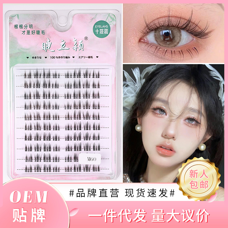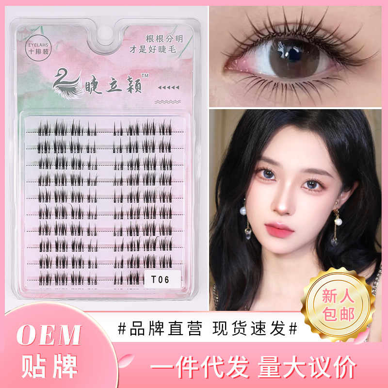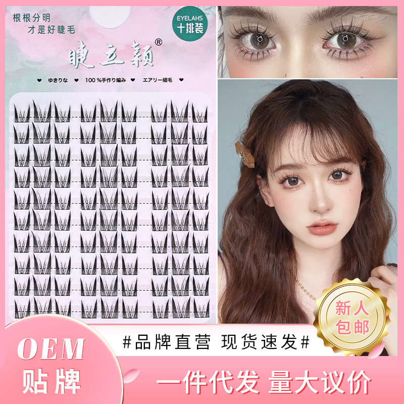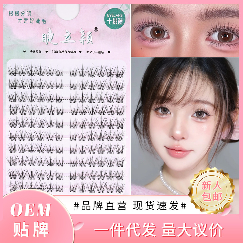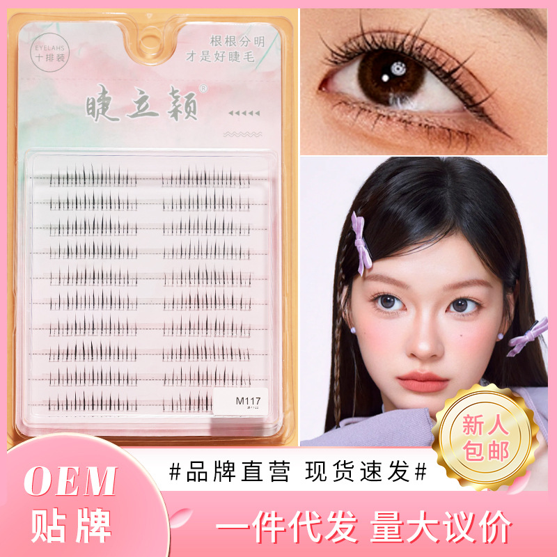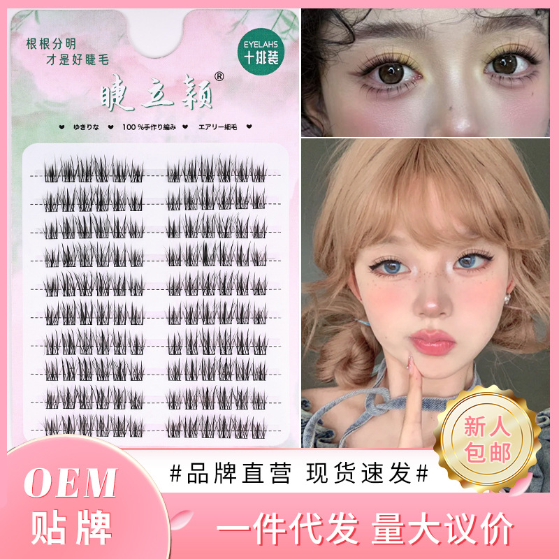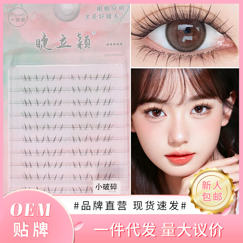 睫立颖轻奢双尖假睫毛三部曲单簇10排纯欲新手自然上睫毛厂家批发