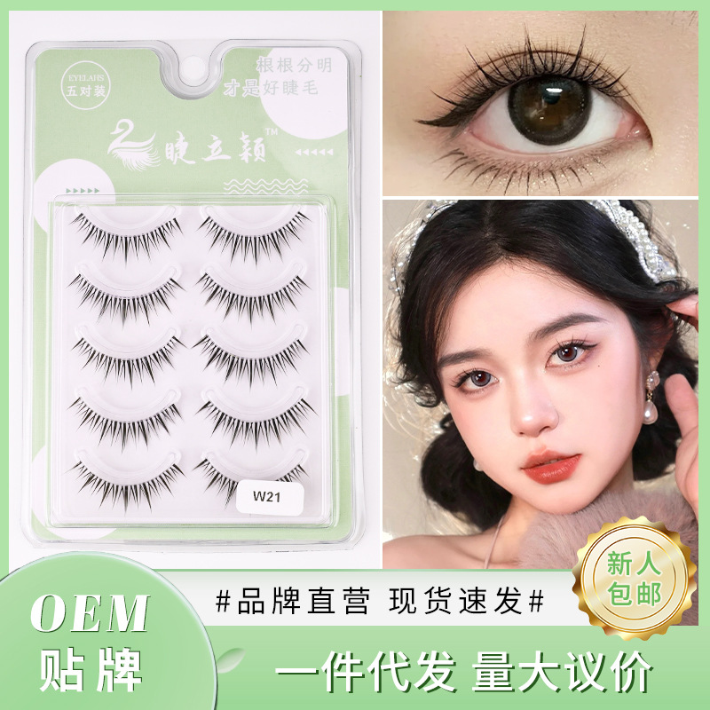 睫立颖W21上睫毛自然日系芭比仿真裸妆透明梗整簇假睫毛厂家批发
