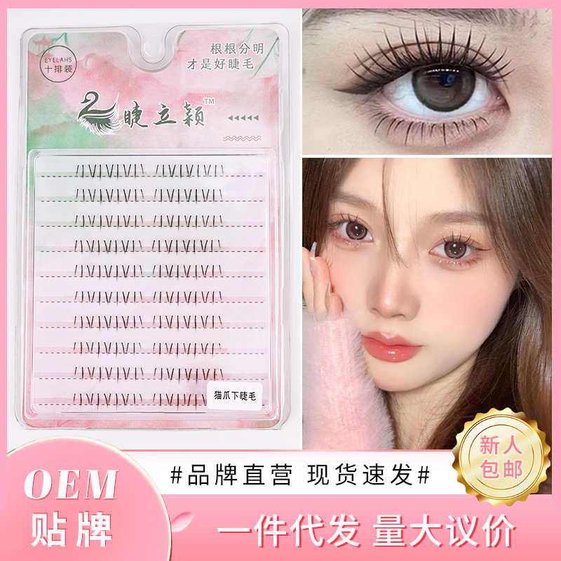 睫立颖小猫爪下睫毛三部曲单簇10排纯欲新手自然厂家批发假睫毛