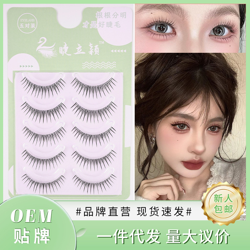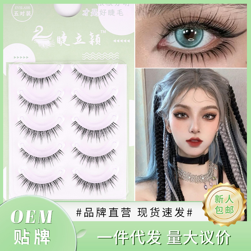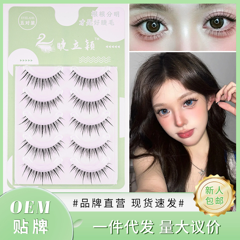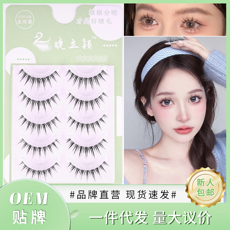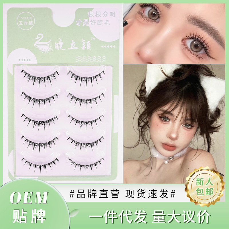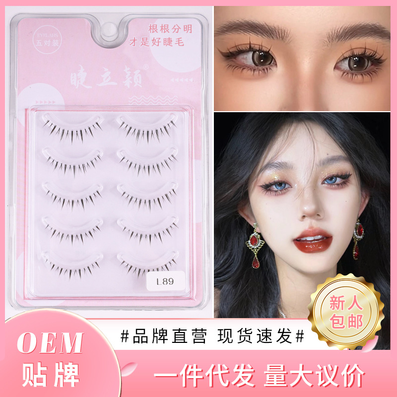 睫立颖L89整簇下睫毛自燃仿真纯欲卷翘厂家批发5对装一体式假睫毛