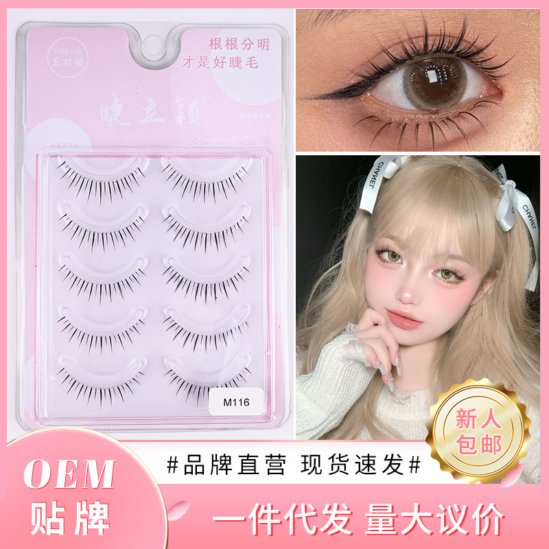 睫立颖M116整簇下睫毛cos漫画眼妈生感五对装一体式假睫毛软毛