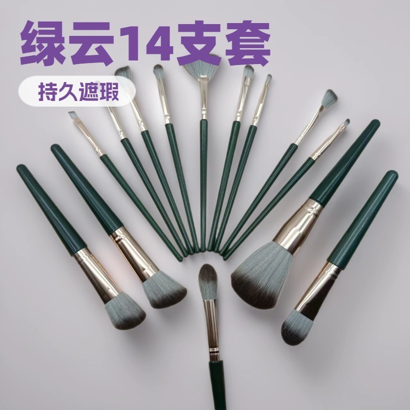 绿云14支化妆刷套装软毛遮瑕刷眼部眼线刷细节眼影粉底刷美妆云感
