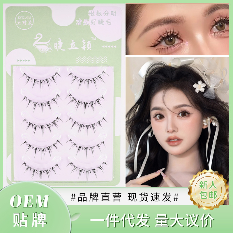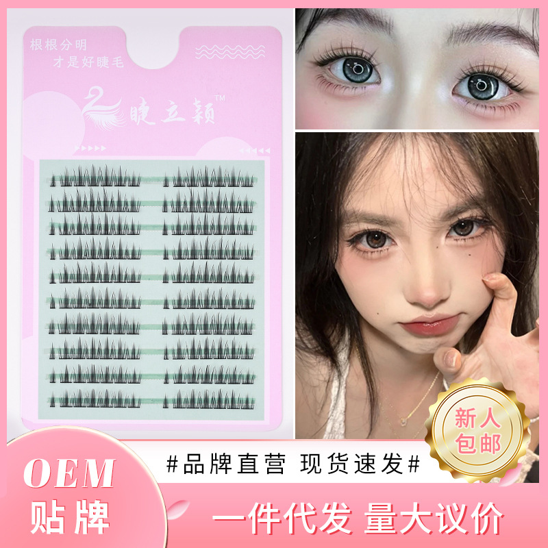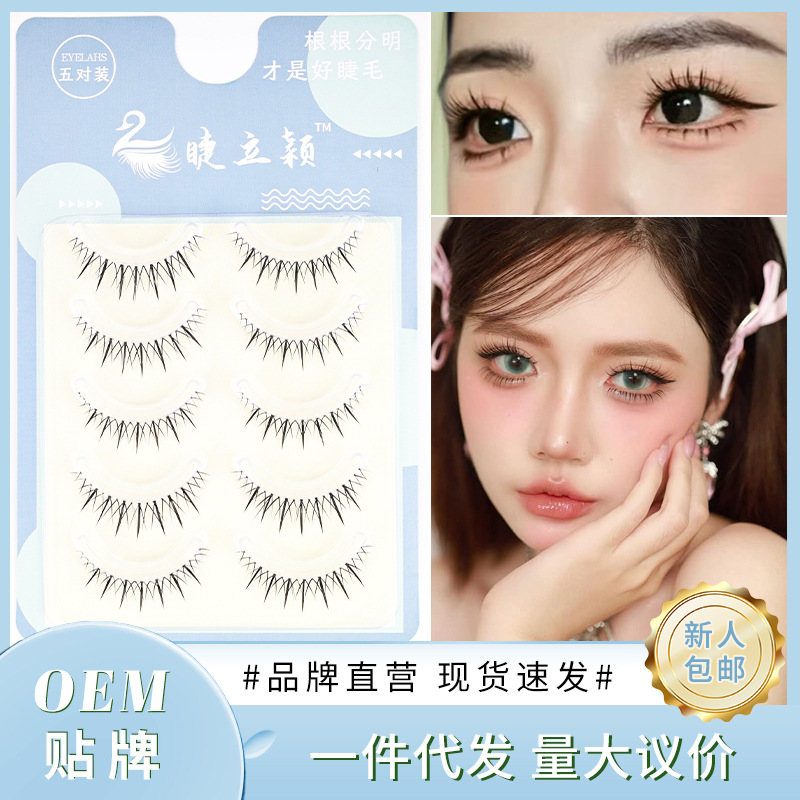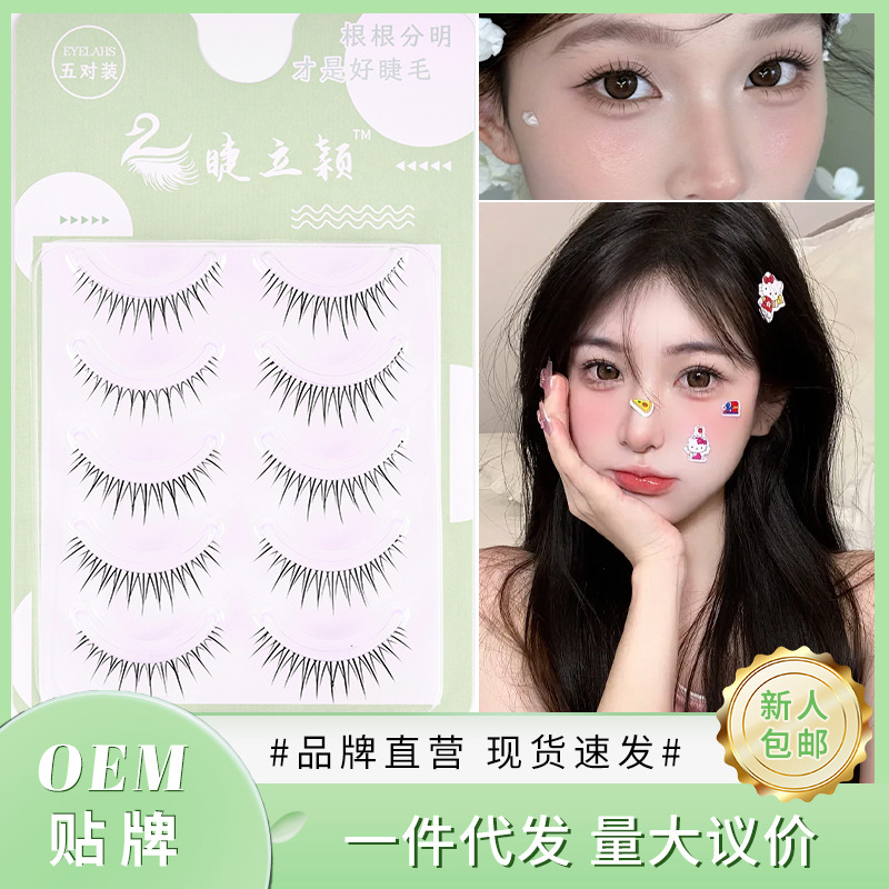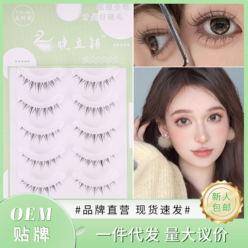 睫立颖织女星下睫毛自然仿真女素颜单簇新手分段式假睫毛厂家批发