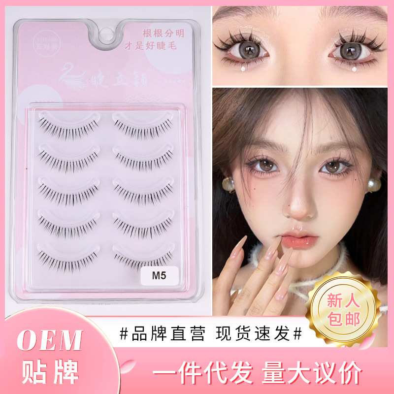睫立颖M5整簇下睫毛透明梗假睫毛自然仿真卷翘批发一片式假睫毛