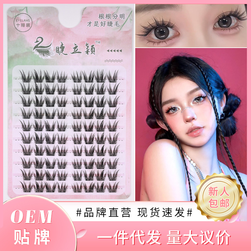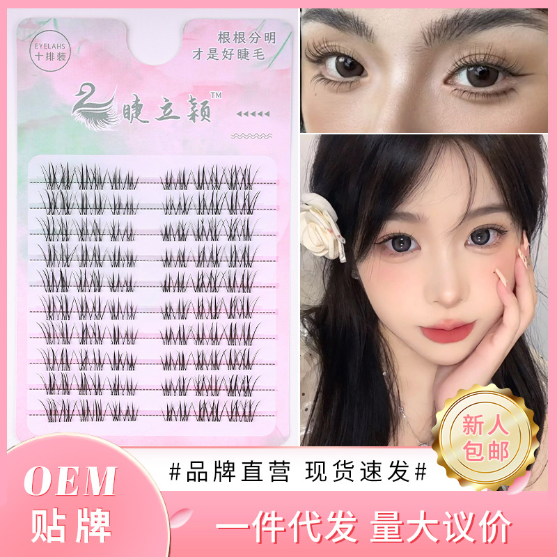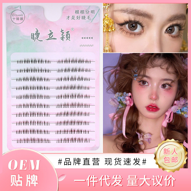 睫立颖小魔仙假睫毛10排高级感自然浓密分段式上睫毛厂家批发