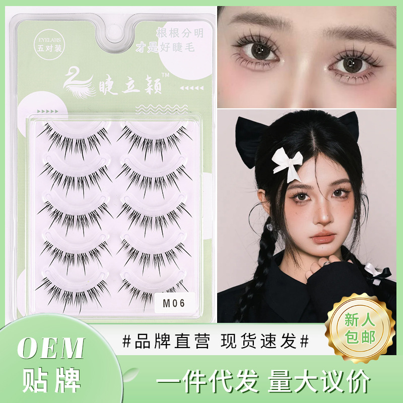 睫立颖M06上睫毛整簇妈生感自然仿真卷翘一片式厂家批发假睫毛