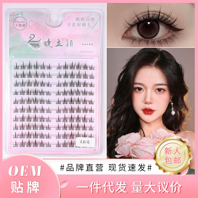 睫立颖太阳花假睫毛120簇大容量自然空气感仿真分段式假睫毛批发