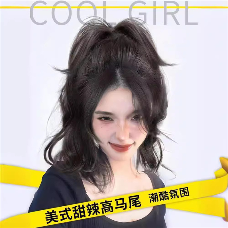 喷泉高马尾假发辫子女辣妹瀑布鸡窝头抓夹式丸子头发饰高颅顶发夹