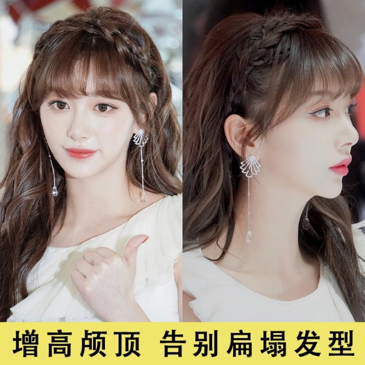 遮白发发箍鱼骨辫假发刘海一体增高颅顶有无鬓角麻花辫子外出发饰
