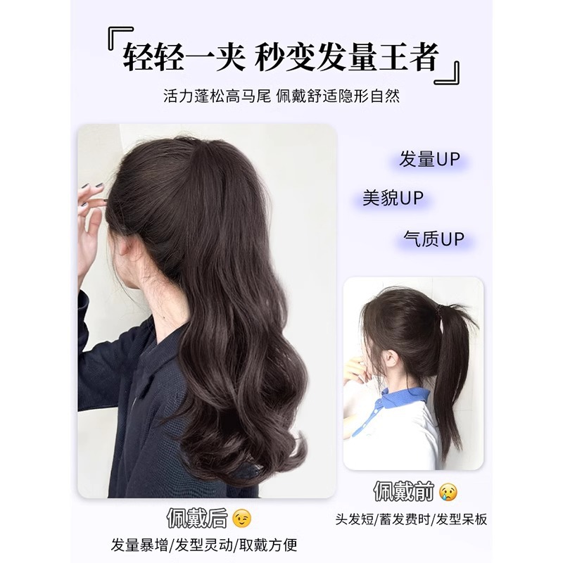 马尾假发女发梨花卷轻盈自然蓬松透气短款高马尾可水洗马尾