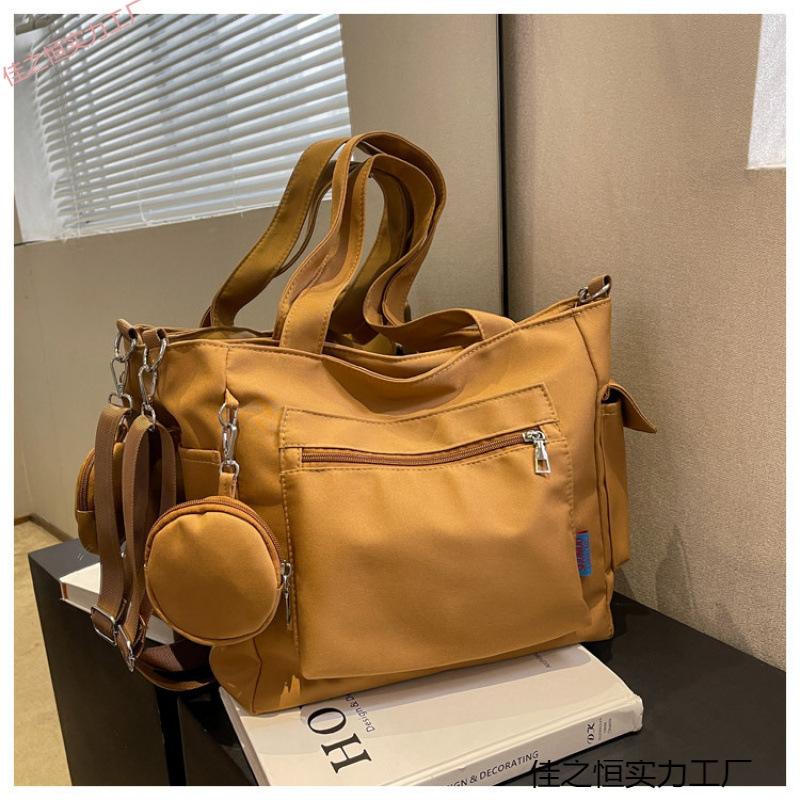 新款纯色帆布包女大容量单肩包学生百搭托特包手拎包斜挎布包