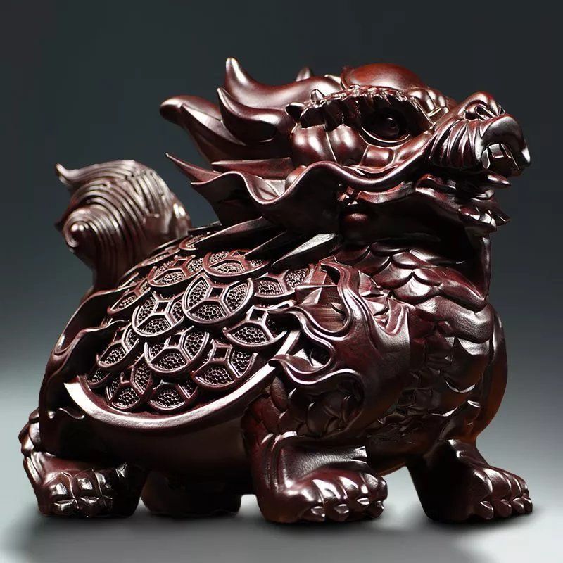 黑檀木龙龟摆件红木刻工艺品实木龙头龟玄武家居办公装饰摆设