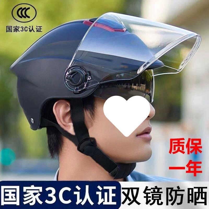 3C认证电动车头盔男款夏季防晒大码双镜片电瓶车安全帽女透气超轻
