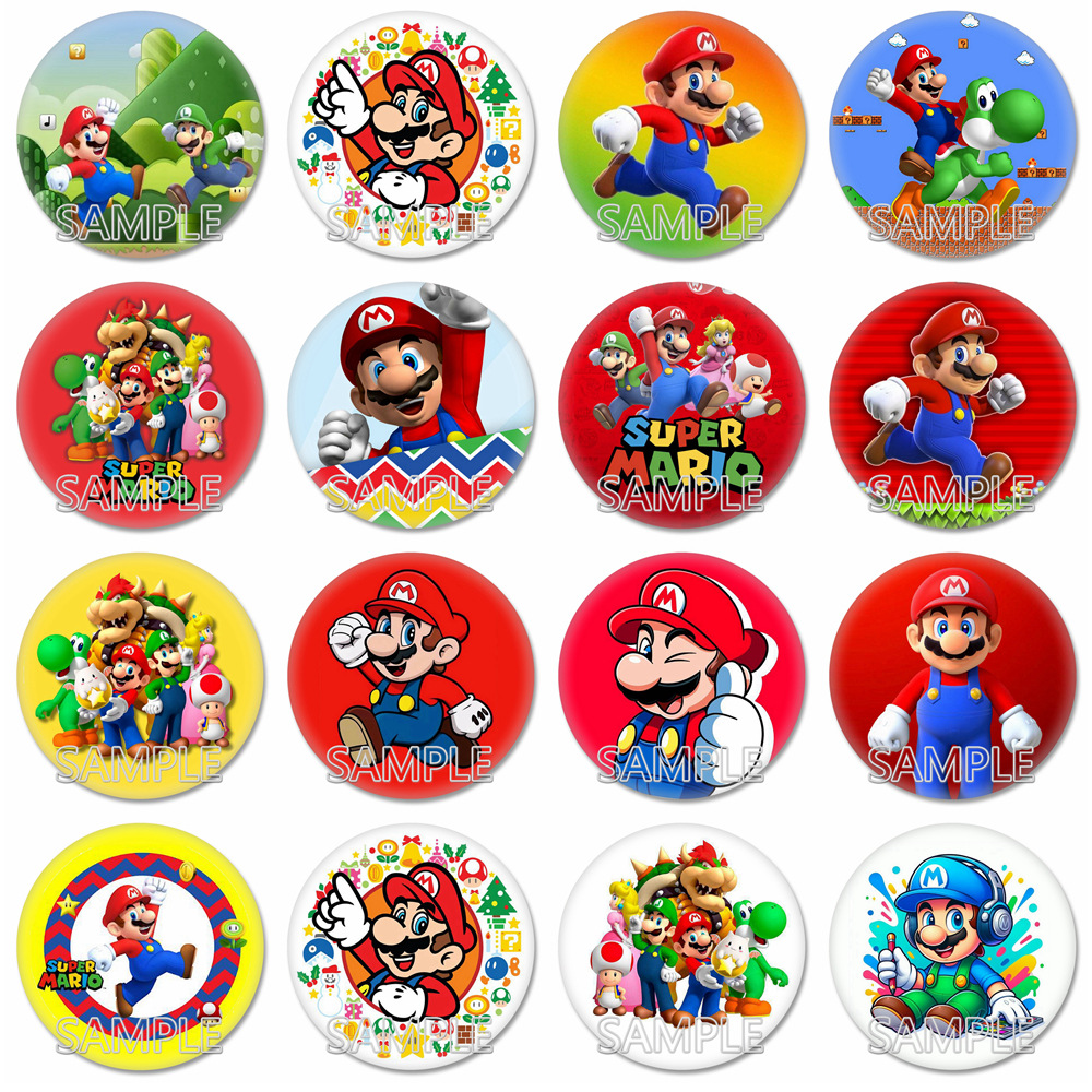 跨境货源 超级玛丽 马里奥吧唧 卡通徽章 创意圆形马口铁胸章
