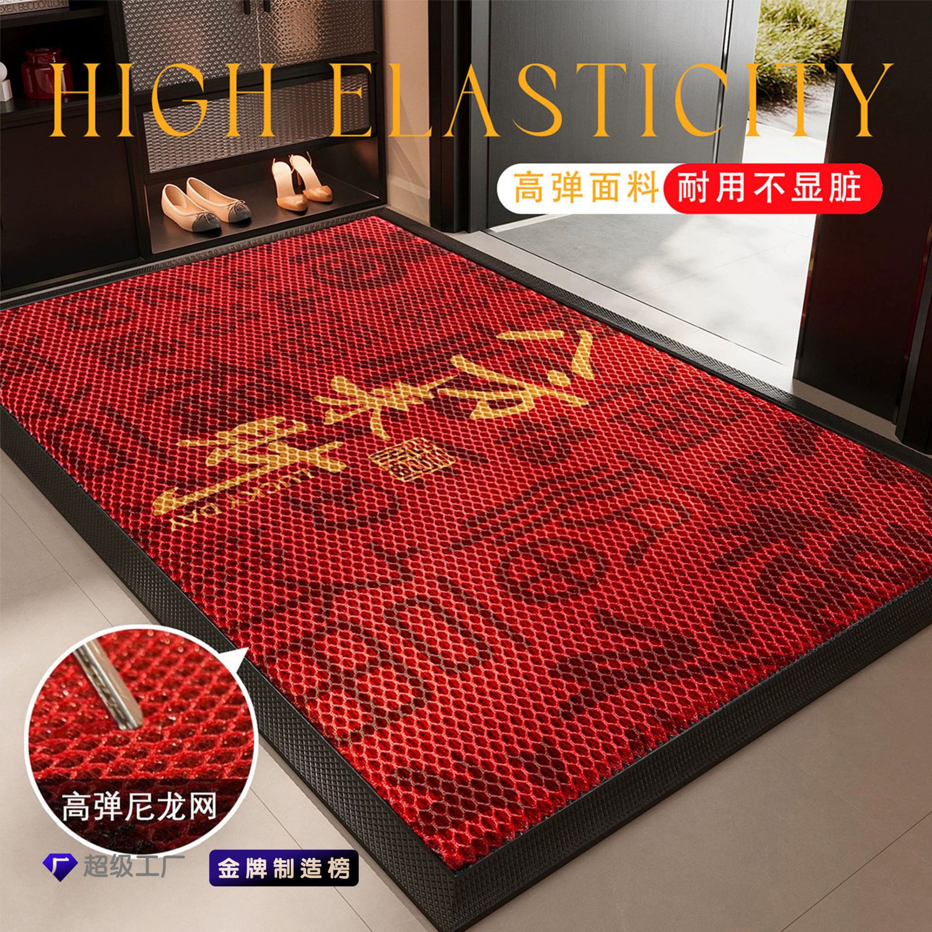 别墅入户门地垫高弹加厚弹力网丝圈进门地垫马年新款室外红色脚垫