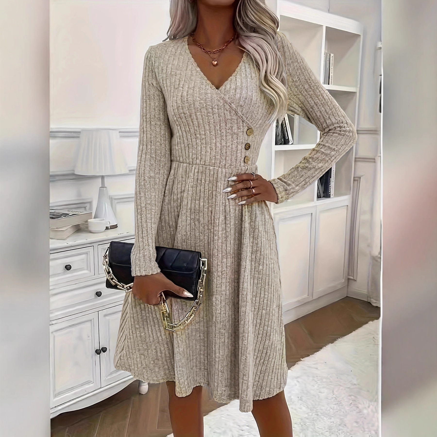 现货外贸爆款2025秋冬亚马逊跨境欧美时尚女士长袖V领收腰连衣裙