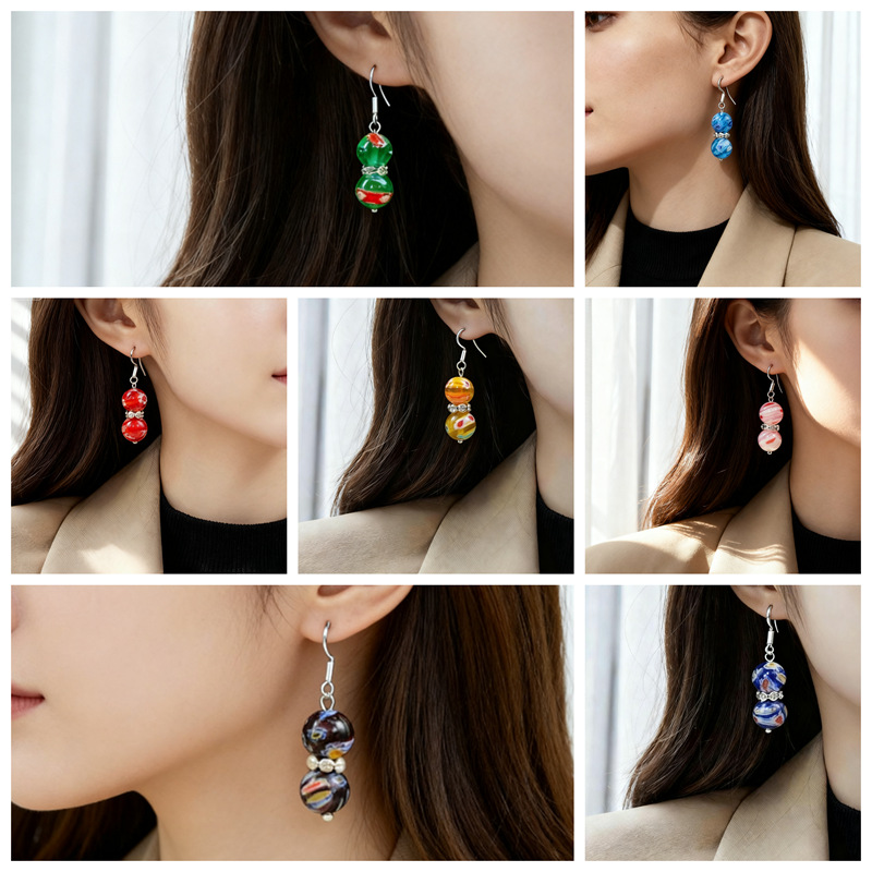 跨境时尚彩虹条纹圆形琉璃彩珠百搭耳环高级独特耳坠串珠气质