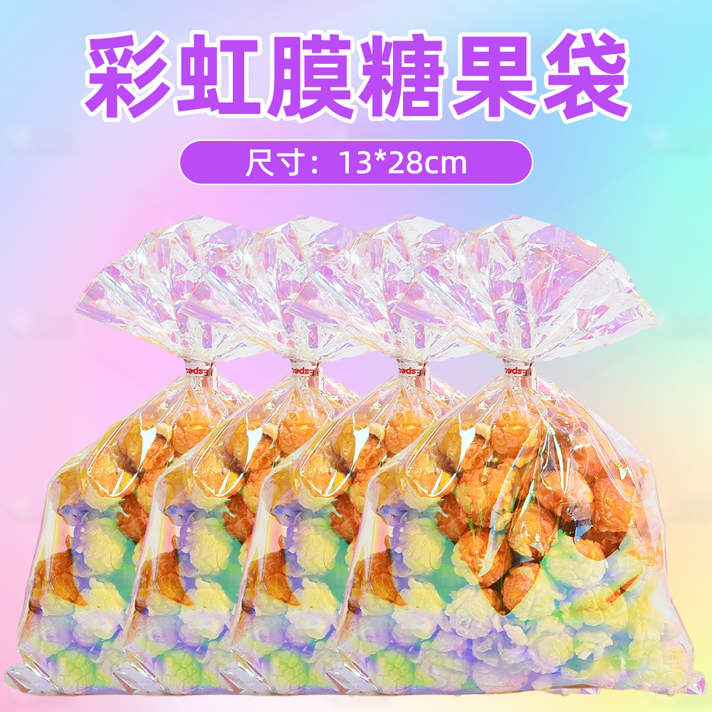 跨境新款彩虹膜糖果袋儿童节分装平口袋渐变炫彩零食饼干包装