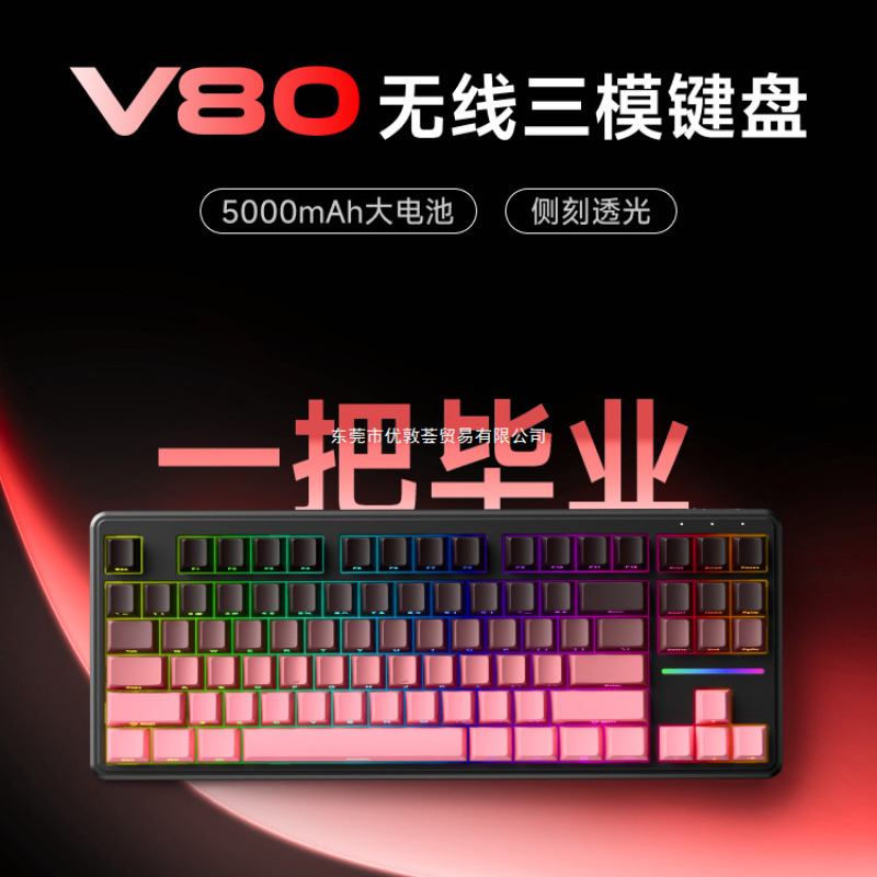 -               前行者V80无线键盘蓝牙机械手感鼠标套装电脑RGB办公游戏专用87键