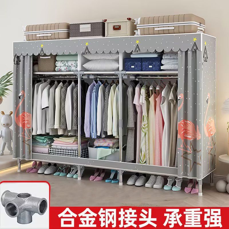 -               家用全钢架加厚卧室衣柜收纳组装简易衣橱钢管加粗出租房加固柜子