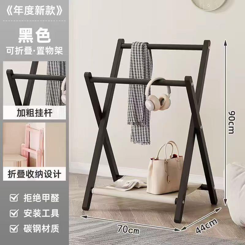 -               落地挂衣架卧室折叠收纳架衣服临时放置房间可折叠临时床头衣帽架