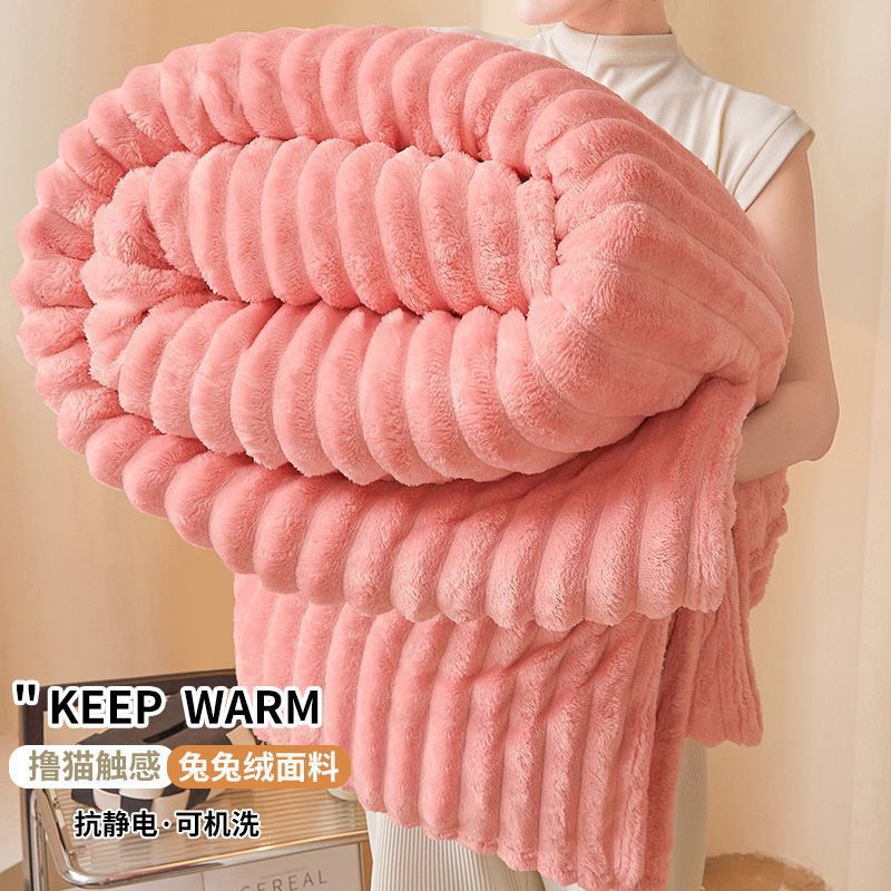 -               兔毛绒冬天保暖毯子加绒毛毯铺床午睡盖被珊瑚绒毯法兰绒加厚床单